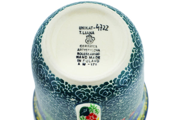 This Garden Of Eve 17 oz Bistro Mug was handmade and hand decorated in Boleslawiec, Poland by skilled artisans according to old traditional methods. This is a Polish pottery Signature Unikat, which means that it has been hand painted with both sponges and brushes and it is signed by the artist who painted it. Unikat pieces are the most intricate works of art. Larger Unikat items take hours of very careful work to finish. This Polish stoneware is microwave, dishwasher, freezer, and oven safe up to 480°F. It does not contain lead or cadmium. It is part of the Garden Of Eve Collection.