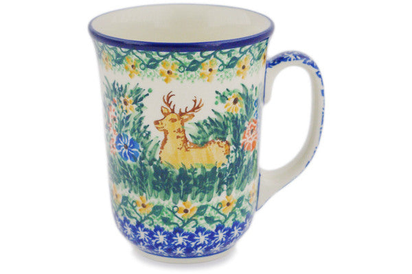 This Oh, Deer! 17 oz Bistro Mug was handmade and hand decorated in Boleslawiec, Poland by skilled artisans according to old traditional methods. This is a Polish pottery Signature Unikat, which means that it has been hand painted with both sponges and brushes and it is signed by the artist who painted it. Unikat pieces are the most intricate works of art. Larger Unikat items take hours of very careful work to finish. This Polish stoneware is microwave, dishwasher, freezer, and oven safe up to 480°F. It does not contain lead or cadmium. It is part of the Oh, Deer! Collection.