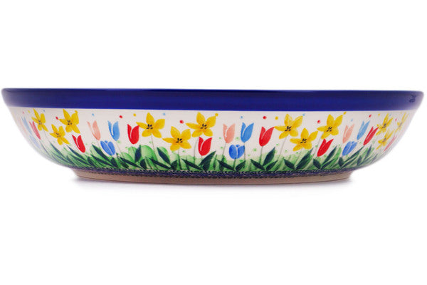 This Summer Tulip 13" Bowl was handmade and hand decorated in Boleslawiec, Poland by skilled artisans according to old traditional methods. This is a Polish pottery Signature Unikat, which means that it has been hand painted with both sponges and brushes and it is signed by the artist who painted it. Unikat pieces are the most intricate works of art. Larger Unikat items take hours of very careful work to finish. This Polish stoneware is microwave, dishwasher, freezer, and oven safe up to 480°F. It does not contain lead or cadmium. It is part of the Summer Tulip Collection.