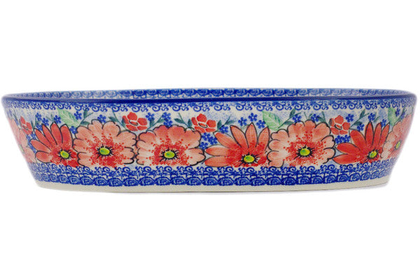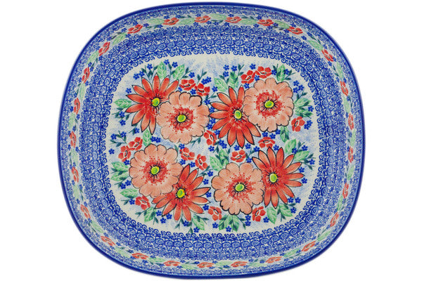 This Peak Of Perfection 14" Bowl was handmade and hand decorated in Boleslawiec, Poland by skilled artisans according to old traditional methods. This is a Polish pottery Signature Unikat, which means that it has been hand painted with both sponges and brushes and it is signed by the artist who painted it. Unikat pieces are the most intricate works of art. Larger Unikat items take hours of very careful work to finish. This Polish stoneware is microwave, dishwasher, freezer, and oven safe up to 480°F. It does not contain lead or cadmium. It is part of the Peak Of Perfection Collection.