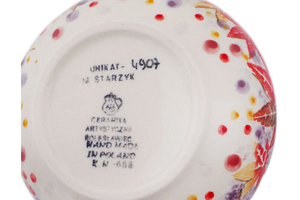 This Perfect Autumn 3" Bowl was handmade and hand decorated in Boleslawiec, Poland by skilled artisans according to old traditional methods. This is a Polish pottery Signature Unikat, which means that it has been hand painted with both sponges and brushes and it is signed by the artist who painted it. Unikat pieces are the most intricate works of art. Larger Unikat items take hours of very careful work to finish. This Polish stoneware is microwave, dishwasher, freezer, and oven safe up to 480°F. It does not contain lead or cadmium. It is part of the Perfect Autumn Collection.