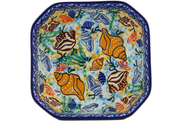 This Ocean Whisper 5" Bowl was handmade and hand decorated in Boleslawiec, Poland by skilled artisans according to old traditional methods. This is a Polish pottery Signature Unikat, which means that it has been hand painted with both sponges and brushes and it is signed by the artist who painted it. Unikat pieces are the most intricate works of art. Larger Unikat items take hours of very careful work to finish. This Polish stoneware is microwave, dishwasher, freezer, and oven safe up to 480°F. It does not contain lead or cadmium. It is part of the Ocean Whisper Collection.