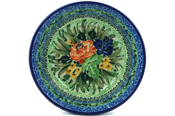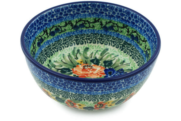 This Splendid Meadow 5" Bowl was handmade and hand decorated in Boleslawiec, Poland by skilled artisans according to old traditional methods. This is a Polish pottery Signature Unikat, which means that it has been hand painted with both sponges and brushes and it is signed by the artist who painted it. Unikat pieces are the most intricate works of art. Larger Unikat items take hours of very careful work to finish. This Polish stoneware is microwave, dishwasher, freezer, and oven safe up to 480°F. It does not contain lead or cadmium. It is part of the Splendid Meadow Collection.