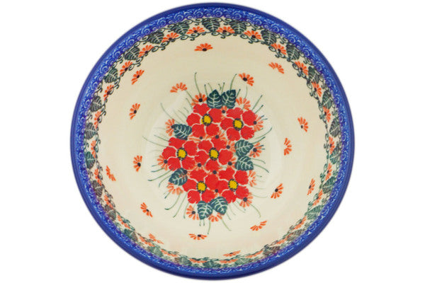 This Pink Forget Me Not 6" Bowl was handmade and hand decorated in Boleslawiec, Poland by skilled artisans according to old traditional methods. This is a Polish pottery Signature Unikat, which means that it has been hand painted with both sponges and brushes and it is signed by the artist who painted it. Unikat pieces are the most intricate works of art. Larger Unikat items take hours of very careful work to finish. This Polish stoneware is microwave, dishwasher, freezer, and oven safe up to 480°F. It does not contain lead or cadmium. It is part of the Pink Forget Me Not Collection.