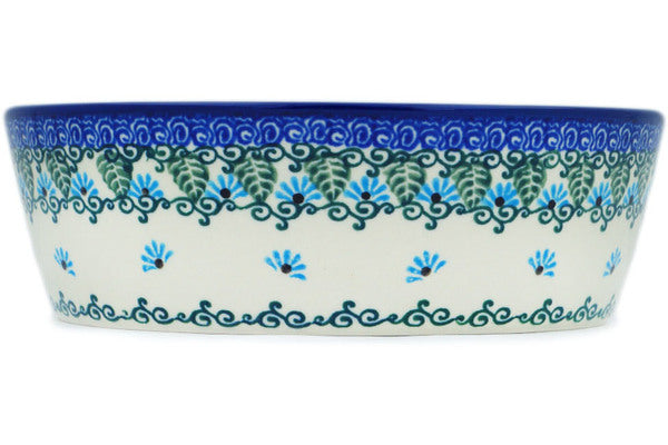 This Forget Me Not 7" Bowl was handmade and hand decorated in Boleslawiec, Poland by skilled artisans according to old traditional methods. This is a Polish pottery Signature Unikat, which means that it has been hand painted with both sponges and brushes and it is signed by the artist who painted it. Unikat pieces are the most intricate works of art. Larger Unikat items take hours of very careful work to finish. This Polish stoneware is microwave, dishwasher, freezer, and oven safe up to 480°F. It does not contain lead or cadmium. It is part of the Forget Me Not Collection.