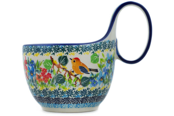 This Relaxing Day 16 oz Bowl with Loop-Handle was handmade and hand decorated in Boleslawiec, Poland by skilled artisans according to old traditional methods. This is a Polish pottery Signature Unikat, which means that it has been hand painted with both sponges and brushes and it is signed by the artist who painted it. Unikat pieces are the most intricate works of art. Larger Unikat items take hours of very careful work to finish. This Polish stoneware is microwave, dishwasher, freezer, and oven safe up to 480°F. It does not contain lead or cadmium. It is part of the Relaxing Day Collection.