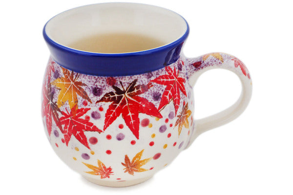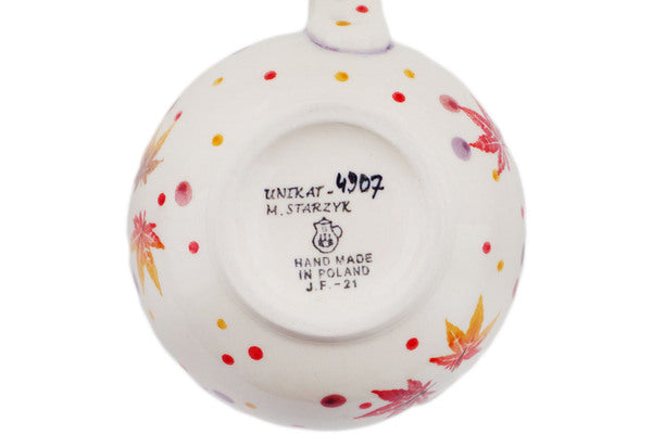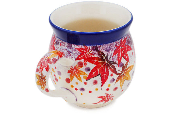 This Perfect Autumn 12oz Bubble Mug was handmade and hand decorated in Boleslawiec, Poland by skilled artisans according to old traditional methods. This is a Polish pottery Signature Unikat, which means that it has been hand painted with both sponges and brushes and it is signed by the artist who painted it. Unikat pieces are the most intricate works of art. Larger Unikat items take hours of very careful work to finish. This Polish stoneware is microwave, dishwasher, freezer, and oven safe up to 480°F. It does not contain lead or cadmium. It is part of the Perfect Autumn Collection.
