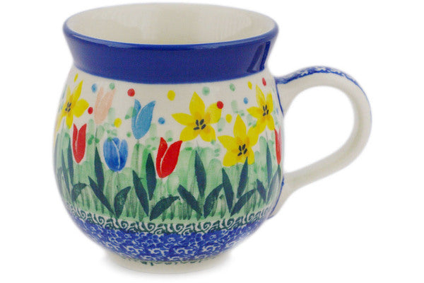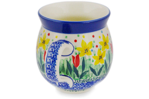 This Summer Tulip 12oz Bubble Mug was handmade and hand decorated in Boleslawiec, Poland by skilled artisans according to old traditional methods. This is a Polish pottery Signature Unikat, which means that it has been hand painted with both sponges and brushes and it is signed by the artist who painted it. Unikat pieces are the most intricate works of art. Larger Unikat items take hours of very careful work to finish. This Polish stoneware is microwave, dishwasher, freezer, and oven safe up to 480°F. It does not contain lead or cadmium. It is part of the Summer Tulip Collection.