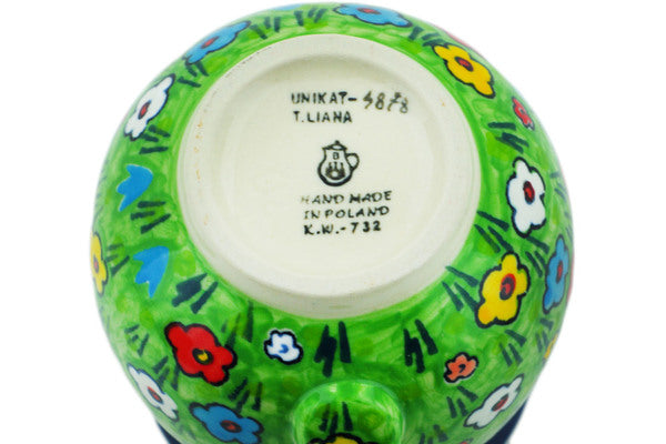 This Whimsical Garden 12oz Bubble Mug was handmade and hand decorated in Boleslawiec, Poland by skilled artisans according to old traditional methods. This is a Polish pottery Signature Unikat, which means that it has been hand painted with both sponges and brushes and it is signed by the artist who painted it. Unikat pieces are the most intricate works of art. Larger Unikat items take hours of very careful work to finish. This Polish stoneware is microwave, dishwasher, freezer, and oven safe up to 480°F. It does not contain lead or cadmium. It is part of the Whimsical Garden Collection.