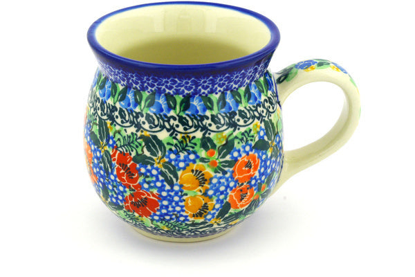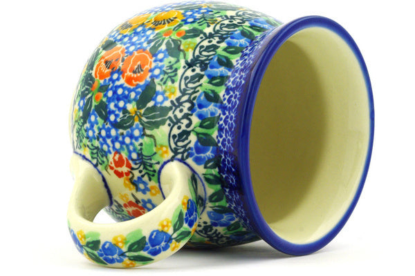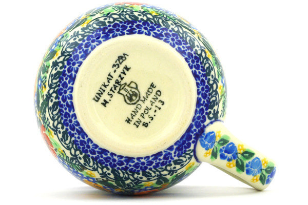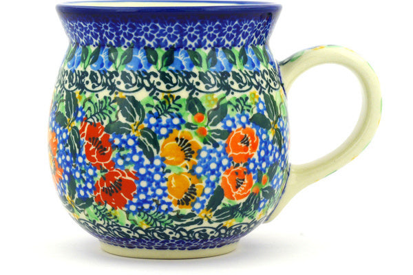 This Blue Daisy Bouquet 16 oz Bubble Mug was handmade and hand decorated in Boleslawiec, Poland by skilled artisans according to old traditional methods. This is a Polish pottery Signature Unikat, which means that it has been hand painted with both sponges and brushes and it is signed by the artist who painted it. Unikat pieces are the most intricate works of art. Larger Unikat items take hours of very careful work to finish. This Polish stoneware is microwave, dishwasher, freezer, and oven safe up to 480°F. It does not contain lead or cadmium. It is part of the Blue Daisy Bouquet Collection.