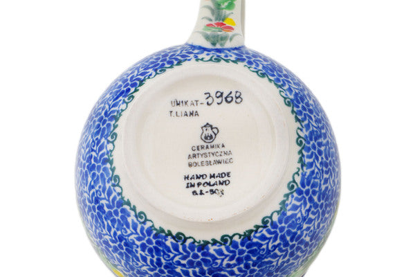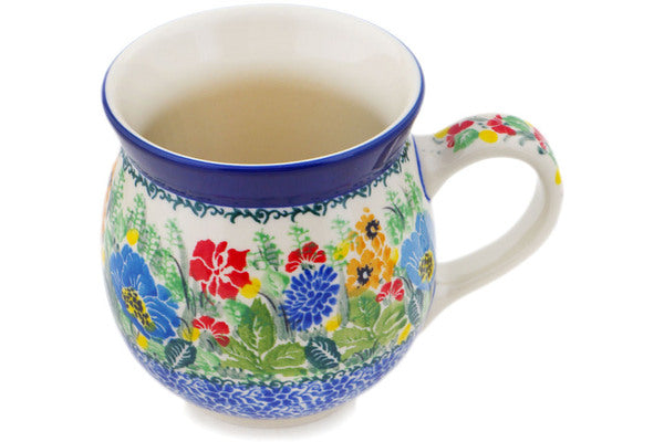 This Lovely Cottage Garden 16 oz Bubble Mug was handmade and hand decorated in Boleslawiec, Poland by skilled artisans according to old traditional methods. This is a Polish pottery Signature Unikat, which means that it has been hand painted with both sponges and brushes and it is signed by the artist who painted it. Unikat pieces are the most intricate works of art. Larger Unikat items take hours of very careful work to finish. This Polish stoneware is microwave, dishwasher, freezer, and oven safe up to 480°F. It does not contain lead or cadmium. It is part of the Lovely Cottage Garden Collection.