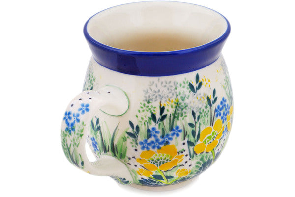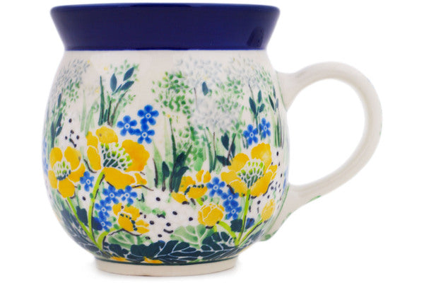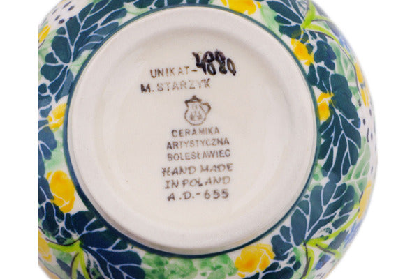 This Serenity 16 oz Bubble Mug was handmade and hand decorated in Boleslawiec, Poland by skilled artisans according to old traditional methods. This is a Polish pottery Signature Unikat, which means that it has been hand painted with both sponges and brushes and it is signed by the artist who painted it. Unikat pieces are the most intricate works of art. Larger Unikat items take hours of very careful work to finish. This Polish stoneware is microwave, dishwasher, freezer, and oven safe up to 480°F. It does not contain lead or cadmium. It is part of the Serenity Collection.
