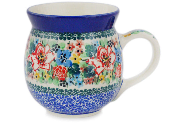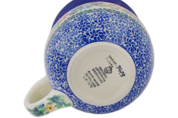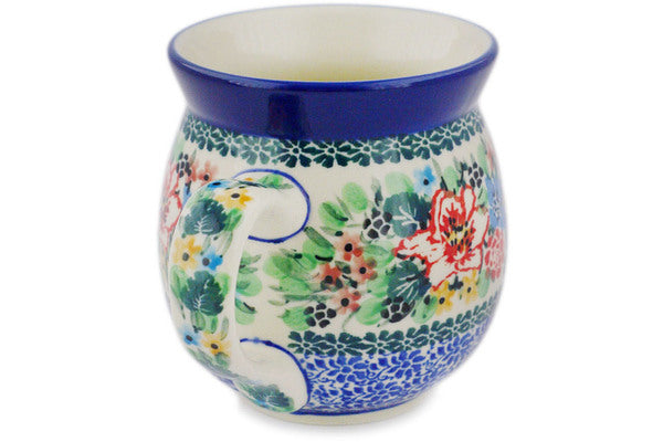This Splendid Hibiscus 16 oz Bubble Mug was handmade and hand decorated in Boleslawiec, Poland by skilled artisans according to old traditional methods. This is a Polish pottery Signature Unikat, which means that it has been hand painted with both sponges and brushes and it is signed by the artist who painted it. Unikat pieces are the most intricate works of art. Larger Unikat items take hours of very careful work to finish. This Polish stoneware is microwave, dishwasher, freezer, and oven safe up to 480°F. It does not contain lead or cadmium. It is part of the Splendid Hibiscus Collection.