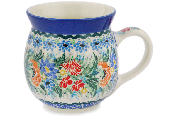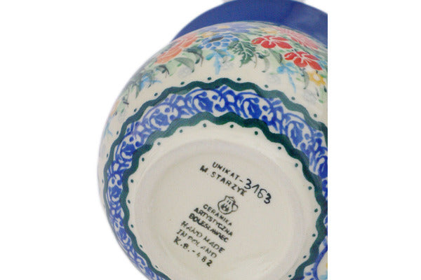 This Spring Arrangement 16 oz Bubble Mug was handmade and hand decorated in Boleslawiec, Poland by skilled artisans according to old traditional methods. This is a Polish pottery Signature Unikat, which means that it has been hand painted with both sponges and brushes and it is signed by the artist who painted it. Unikat pieces are the most intricate works of art. Larger Unikat items take hours of very careful work to finish. This Polish stoneware is microwave, dishwasher, freezer, and oven safe up to 480°F. It does not contain lead or cadmium. It is part of the Spring Arrangement Collection.