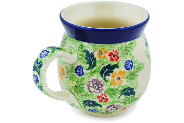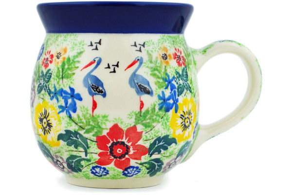 This Springing Into Life 16 oz Bubble Mug was handmade and hand decorated in Boleslawiec, Poland by skilled artisans according to old traditional methods. This is a Polish pottery Signature Unikat, which means that it has been hand painted with both sponges and brushes and it is signed by the artist who painted it. Unikat pieces are the most intricate works of art. Larger Unikat items take hours of very careful work to finish. This Polish stoneware is microwave, dishwasher, freezer, and oven safe up to 480°F. It does not contain lead or cadmium. It is part of the Springing Into Life Collection.