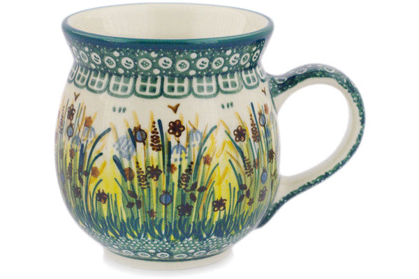 This Wetland Reeds 16 oz Bubble Mug was handmade and hand decorated in Boleslawiec, Poland by skilled artisans according to old traditional methods. This is a Polish pottery Signature Unikat, which means that it has been hand painted with both sponges and brushes and it is signed by the artist who painted it. Unikat pieces are the most intricate works of art. Larger Unikat items take hours of very careful work to finish. This Polish stoneware is microwave, dishwasher, freezer, and oven safe up to 480°F. It does not contain lead or cadmium. It is part of the Wetland Reeds Collection.