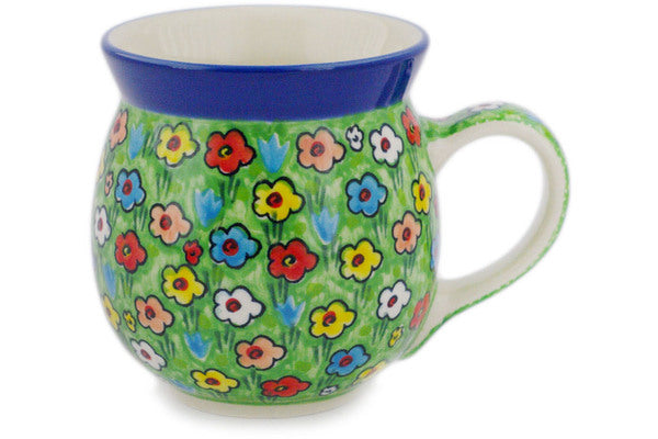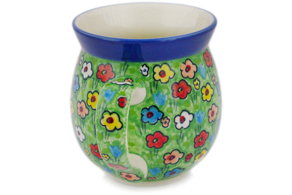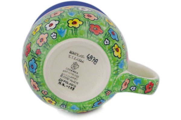 This Whimsical Garden 16 oz Bubble Mug was handmade and hand decorated in Boleslawiec, Poland by skilled artisans according to old traditional methods. This is a Polish pottery Signature Unikat, which means that it has been hand painted with both sponges and brushes and it is signed by the artist who painted it. Unikat pieces are the most intricate works of art. Larger Unikat items take hours of very careful work to finish. This Polish stoneware is microwave, dishwasher, freezer, and oven safe up to 480°F. It does not contain lead or cadmium. It is part of the Whimsical Garden Collection.