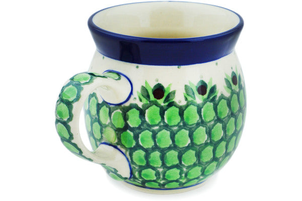 This Cobblestone Path 8 oz Bubble Mug was handmade and hand decorated in Boleslawiec, Poland by skilled artisans according to old traditional methods. This is a Polish pottery Signature Unikat, which means that it has been hand painted with both sponges and brushes and it is signed by the artist who painted it. Unikat pieces are the most intricate works of art. Larger Unikat items take hours of very careful work to finish. This Polish stoneware is microwave, dishwasher, freezer, and oven safe up to 480°F. It does not contain lead or cadmium. It is part of the Cobblestone Path Collection.