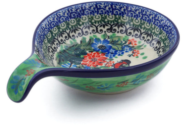 This Red Breasted Robin 7" Condiment Dish was handmade and hand decorated in Boleslawiec, Poland by skilled artisans according to old traditional methods. This is a Polish pottery Signature Unikat, which means that it has been hand painted with both sponges and brushes and it is signed by the artist who painted it. Unikat pieces are the most intricate works of art. Larger Unikat items take hours of very careful work to finish. This Polish stoneware is microwave, dishwasher, freezer, and oven safe up to 480°F. It does not contain lead or cadmium. It is part of the Red Breasted Robin Collection.