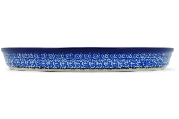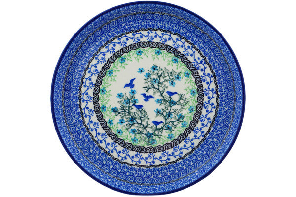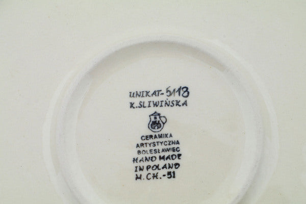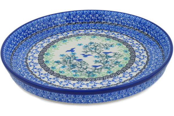 This Blue Bird Flying 10" Cookie Platter was handmade and hand decorated in Boleslawiec, Poland by skilled artisans according to old traditional methods. This is a Polish pottery Signature Unikat, which means that it has been hand painted with both sponges and brushes and it is signed by the artist who painted it. Unikat pieces are the most intricate works of art. Larger Unikat items take hours of very careful work to finish. This Polish stoneware is microwave, dishwasher, freezer, and oven safe up to 480°F. It does not contain lead or cadmium. It is part of the Blue Bird Flying Collection.