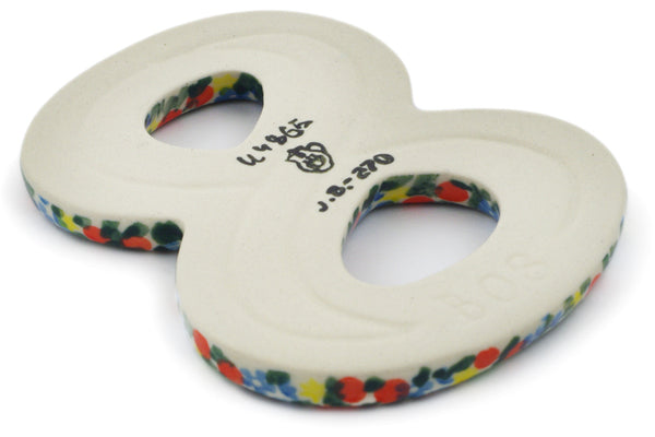 This Red Bouquet 4-inch House Number EIGHT (8) was handmade and hand decorated in Boleslawiec, Poland by skilled artisans according to old traditional methods. This is a Polish pottery Signature Unikat, which means that it has been hand painted with both sponges and brushes and it is signed by the artist who painted it. Unikat pieces are the most intricate works of art. Larger Unikat items take hours of very careful work to finish. This Polish stoneware is microwave, dishwasher, freezer, and oven safe up to 480°F. It does not contain lead or cadmium. It is part of the Red Bouquet Collection.