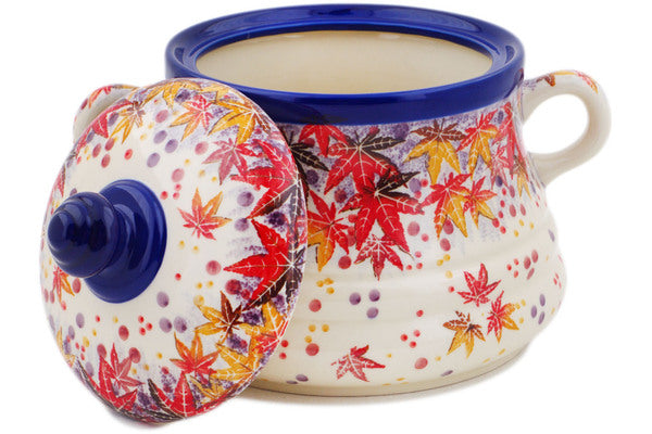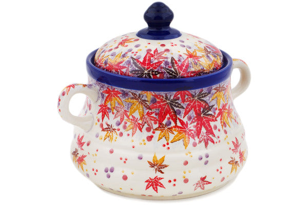 This Perfect Autumn 9" Jar with Lid and Handles was handmade and hand decorated in Boleslawiec, Poland by skilled artisans according to old traditional methods. This is a Polish pottery Signature Unikat, which means that it has been hand painted with both sponges and brushes and it is signed by the artist who painted it. Unikat pieces are the most intricate works of art. Larger Unikat items take hours of very careful work to finish. This Polish stoneware is microwave, dishwasher, freezer, and oven safe up to 480°F. It does not contain lead or cadmium. It is part of the Perfect Autumn Collection.