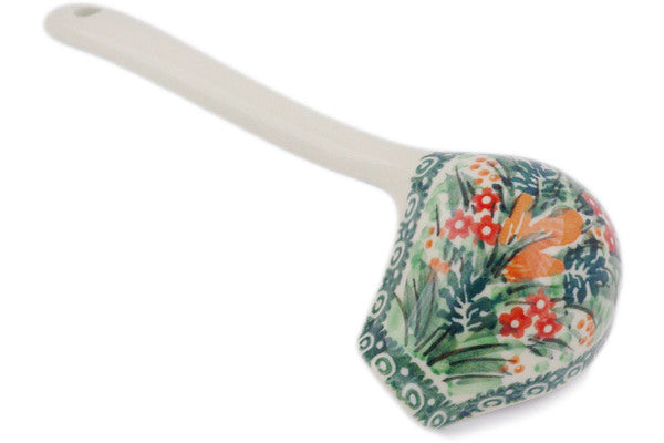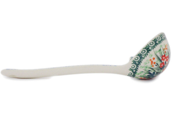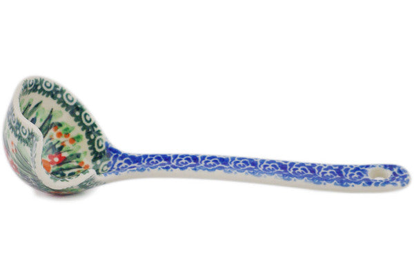 This Iris Bouquet 7" Ladle was handmade and hand decorated in Boleslawiec, Poland by skilled artisans according to old traditional methods. This is a Polish pottery Signature Unikat, which means that it has been hand painted with both sponges and brushes and it is signed by the artist who painted it. Unikat pieces are the most intricate works of art. Larger Unikat items take hours of very careful work to finish. This Polish stoneware is microwave, dishwasher, freezer, and oven safe up to 480°F. It does not contain lead or cadmium. It is part of the Iris Bouquet Collection.