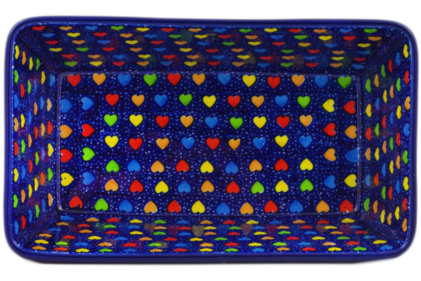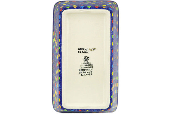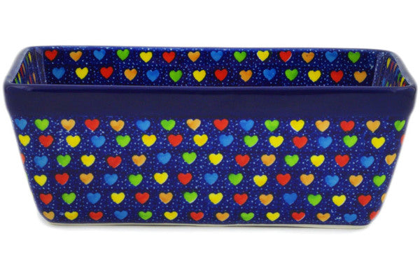 This Colourful Dot Show 8" Loaf Pan 8" was handmade and hand decorated in Boleslawiec, Poland by skilled artisans according to old traditional methods. This is a Polish pottery Signature Unikat, which means that it has been hand painted with both sponges and brushes and it is signed by the artist who painted it. Unikat pieces are the most intricate works of art. Larger Unikat items take hours of very careful work to finish. This Polish stoneware is microwave, dishwasher, freezer, and oven safe up to 480°F. It does not contain lead or cadmium. It is part of the Colourful Dot Show Collection.