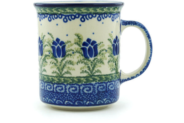 This Tulip Motif 10 oz Mug was handmade and hand decorated in Boleslawiec, Poland by skilled artisans according to old traditional methods. This is a Polish pottery Signature Unikat, which means that it has been hand painted with both sponges and brushes and it is signed by the artist who painted it. Unikat pieces are the most intricate works of art. Larger Unikat items take hours of very careful work to finish. This Polish stoneware is microwave, dishwasher, freezer, and oven safe up to 480°F. It does not contain lead or cadmium. It is part of the Tulip Motif Collection.