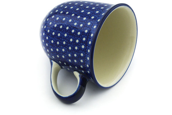 This White Polka Dot 10 oz Mug was handmade and hand decorated in Boleslawiec, Poland by skilled artisans according to old traditional methods. This is a Polish pottery Signature Unikat, which means that it has been hand painted with both sponges and brushes and it is signed by the artist who painted it. Unikat pieces are the most intricate works of art. Larger Unikat items take hours of very careful work to finish. This Polish stoneware is microwave, dishwasher, freezer, and oven safe up to 480°F. It does not contain lead or cadmium. It is part of the White Polka Dot Collection.
