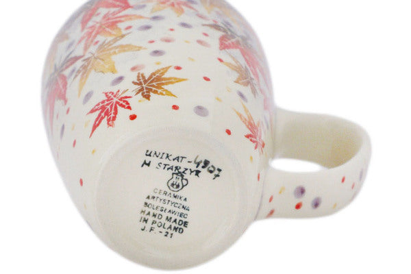 This Perfect Autumn 12 oz Mug was handmade and hand decorated in Boleslawiec, Poland by skilled artisans according to old traditional methods. This is a Polish pottery Signature Unikat, which means that it has been hand painted with both sponges and brushes and it is signed by the artist who painted it. Unikat pieces are the most intricate works of art. Larger Unikat items take hours of very careful work to finish. This Polish stoneware is microwave, dishwasher, freezer, and oven safe up to 480°F. It does not contain lead or cadmium. It is part of the Perfect Autumn Collection.