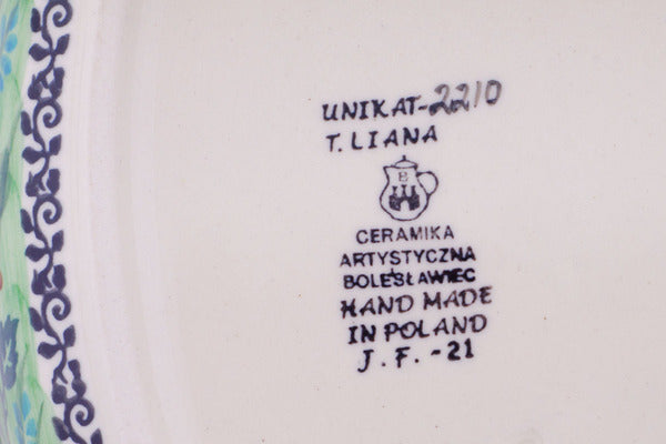 This Spring Garden 9" Oval Baker was handmade and hand decorated in Boleslawiec, Poland by skilled artisans according to old traditional methods. This is a Polish pottery Signature Unikat, which means that it has been hand painted with both sponges and brushes and it is signed by the artist who painted it. Unikat pieces are the most intricate works of art. Larger Unikat items take hours of very careful work to finish. This Polish stoneware is microwave, dishwasher, freezer, and oven safe up to 480°F. It does not contain lead or cadmium. It is part of the Spring Garden Collection.
