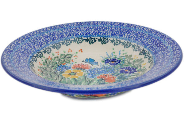 This Butterfly Delight 9" Pasta Bowl was handmade and hand decorated in Boleslawiec, Poland by skilled artisans according to old traditional methods. This is a Polish pottery Signature Unikat, which means that it has been hand painted with both sponges and brushes and it is signed by the artist who painted it. Unikat pieces are the most intricate works of art. Larger Unikat items take hours of very careful work to finish. This Polish stoneware is microwave, dishwasher, freezer, and oven safe up to 480°F. It does not contain lead or cadmium. It is part of the Butterfly Delight Collection.