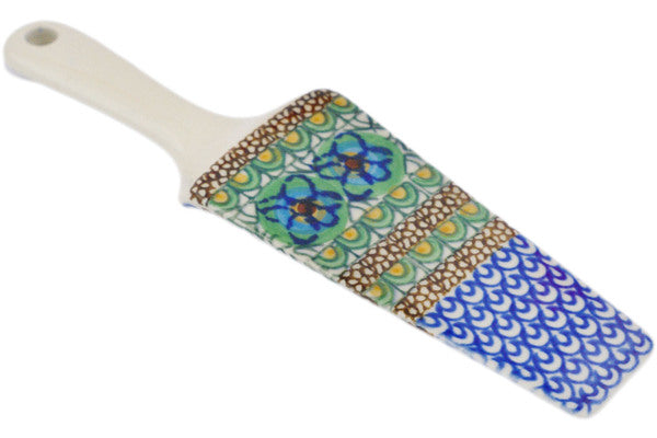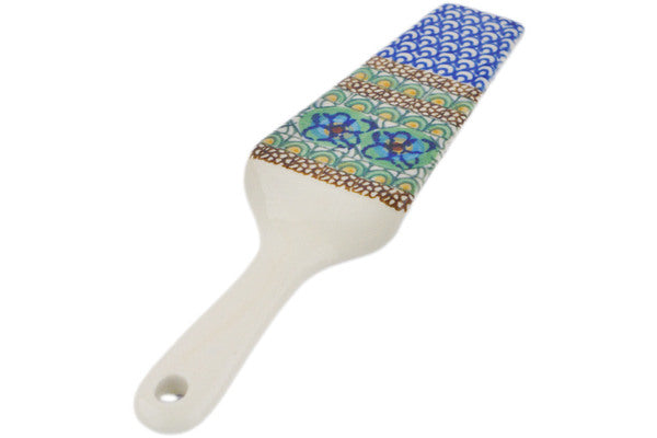 This Mardi Gras 10" Pie and Cake Server was handmade and hand decorated in Boleslawiec, Poland by skilled artisans according to old traditional methods. This is a Polish pottery Signature Unikat, which means that it has been hand painted with both sponges and brushes and it is signed by the artist who painted it. Unikat pieces are the most intricate works of art. Larger Unikat items take hours of very careful work to finish. This Polish stoneware is microwave, dishwasher, freezer, and oven safe up to 480°F. It does not contain lead or cadmium. It is part of the Mardi Gras Collection.