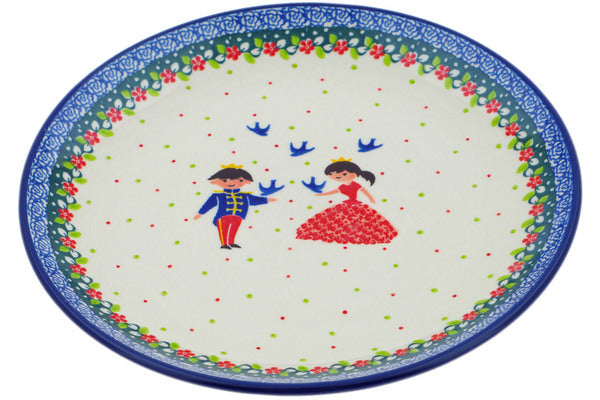 This Bird Prince And Princess 10" Plate was handmade and hand decorated in Boleslawiec, Poland by skilled artisans according to old traditional methods. This is a Polish pottery Signature Unikat, which means that it has been hand painted with both sponges and brushes and it is signed by the artist who painted it. Unikat pieces are the most intricate works of art. Larger Unikat items take hours of very careful work to finish. This Polish stoneware is microwave, dishwasher, freezer, and oven safe up to 480°F. It does not contain lead or cadmium. It is part of the Bird Prince And Princess Collection.