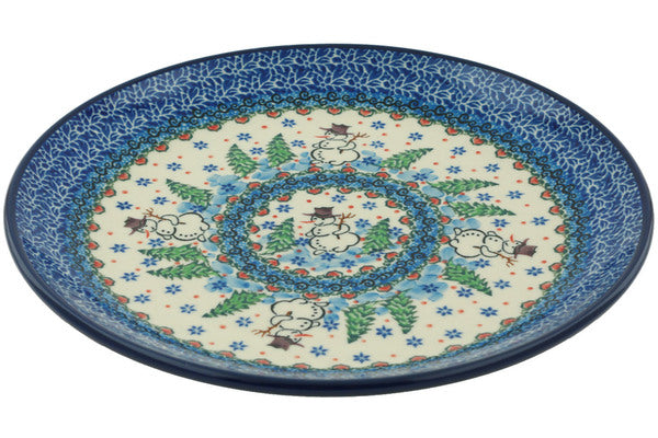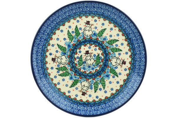This Dancing Snowman 10" Plate was handmade and hand decorated in Boleslawiec, Poland by skilled artisans according to old traditional methods. This is a Polish pottery Signature Unikat, which means that it has been hand painted with both sponges and brushes and it is signed by the artist who painted it. Unikat pieces are the most intricate works of art. Larger Unikat items take hours of very careful work to finish. This Polish stoneware is microwave, dishwasher, freezer, and oven safe up to 480°F. It does not contain lead or cadmium. It is part of the Dancing Snowman Collection.