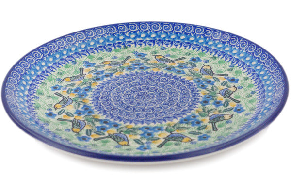 This Floral Flock 10" Plate was handmade and hand decorated in Boleslawiec, Poland by skilled artisans according to old traditional methods. This is a Polish pottery Signature Unikat, which means that it has been hand painted with both sponges and brushes and it is signed by the artist who painted it. Unikat pieces are the most intricate works of art. Larger Unikat items take hours of very careful work to finish. This Polish stoneware is microwave, dishwasher, freezer, and oven safe up to 480°F. It does not contain lead or cadmium. It is part of the Floral Flock Collection.
