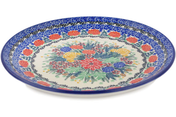 This Hidden Pines 10" Plate was handmade and hand decorated in Boleslawiec, Poland by skilled artisans according to old traditional methods. This is a Polish pottery Signature Unikat, which means that it has been hand painted with both sponges and brushes and it is signed by the artist who painted it. Unikat pieces are the most intricate works of art. Larger Unikat items take hours of very careful work to finish. This Polish stoneware is microwave, dishwasher, freezer, and oven safe up to 480°F. It does not contain lead or cadmium. It is part of the Hidden Pines Collection.