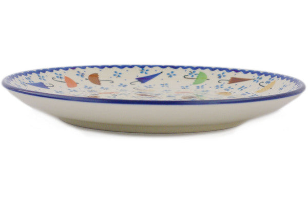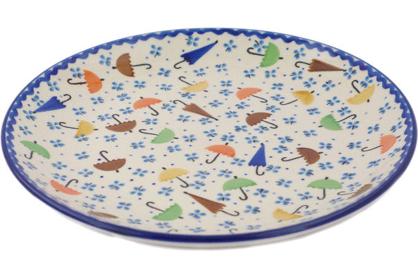 This Raining Umbrellas 10" Plate was handmade and hand decorated in Boleslawiec, Poland by skilled artisans according to old traditional methods. This is a Polish pottery Signature Unikat, which means that it has been hand painted with both sponges and brushes and it is signed by the artist who painted it. Unikat pieces are the most intricate works of art. Larger Unikat items take hours of very careful work to finish. This Polish stoneware is microwave, dishwasher, freezer, and oven safe up to 480°F. It does not contain lead or cadmium. It is part of the Raining Umbrellas Collection.