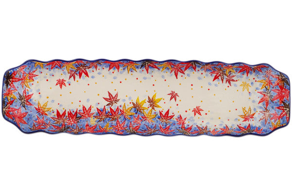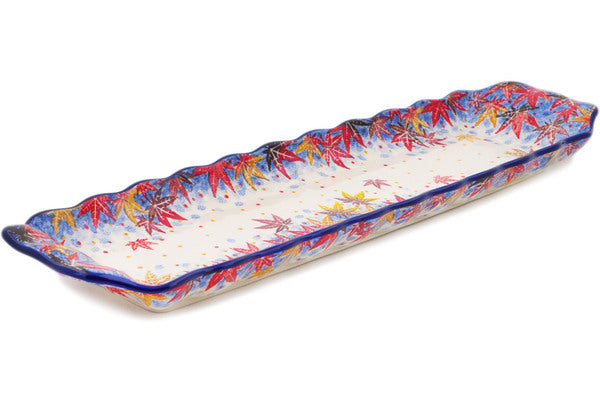 This Autumn Perfection 20" Platter with Handles was handmade and hand decorated in Boleslawiec, Poland by skilled artisans according to old traditional methods. This is a Polish pottery Signature Unikat, which means that it has been hand painted with both sponges and brushes and it is signed by the artist who painted it. Unikat pieces are the most intricate works of art. Larger Unikat items take hours of very careful work to finish. This Polish stoneware is microwave, dishwasher, freezer, and oven safe up to 480°F. It does not contain lead or cadmium. It is part of the Autumn Perfection Collection.
