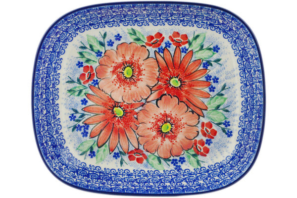 This Peak Of Perfection 9" Platter was handmade and hand decorated in Boleslawiec, Poland by skilled artisans according to old traditional methods. This is a Polish pottery Signature Unikat, which means that it has been hand painted with both sponges and brushes and it is signed by the artist who painted it. Unikat pieces are the most intricate works of art. Larger Unikat items take hours of very careful work to finish. This Polish stoneware is microwave, dishwasher, freezer, and oven safe up to 480°F. It does not contain lead or cadmium. It is part of the Peak Of Perfection Collection.