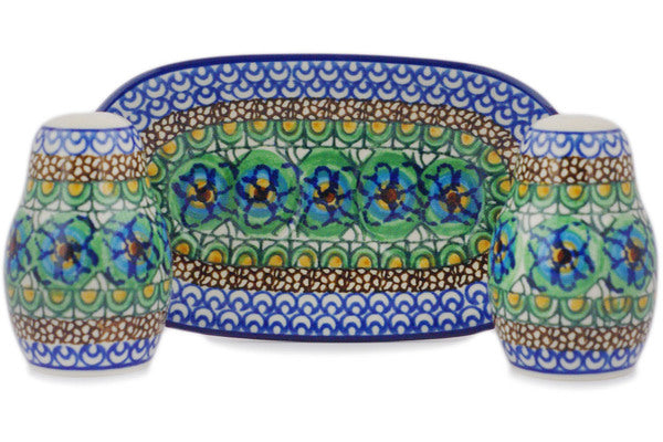 This Mardi Gras 7" Salt and Pepper 3-Piece Set was handmade and hand decorated in Boleslawiec, Poland by skilled artisans according to old traditional methods. This is a Polish pottery Signature Unikat, which means that it has been hand painted with both sponges and brushes and it is signed by the artist who painted it. Unikat pieces are the most intricate works of art. Larger Unikat items take hours of very careful work to finish. This Polish stoneware is microwave, dishwasher, freezer, and oven safe up to 480°F. It does not contain lead or cadmium. It is part of the Mardi Gras Collection.