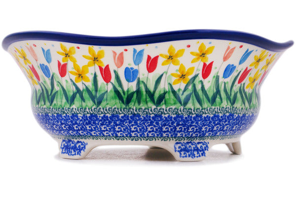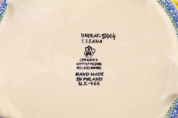 This Summer Tulip 10" Scalloped Bowl was handmade and hand decorated in Boleslawiec, Poland by skilled artisans according to old traditional methods. This is a Polish pottery Signature Unikat, which means that it has been hand painted with both sponges and brushes and it is signed by the artist who painted it. Unikat pieces are the most intricate works of art. Larger Unikat items take hours of very careful work to finish. This Polish stoneware is microwave, dishwasher, freezer, and oven safe up to 480°F. It does not contain lead or cadmium. It is part of the Summer Tulip Collection.