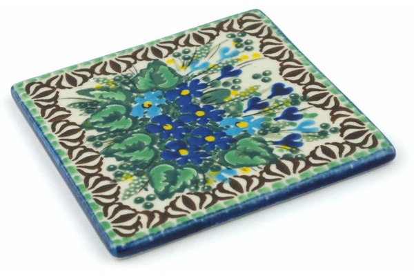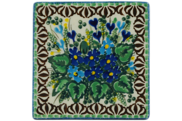 This Blue Violet Garden 4" Tile was handmade and hand decorated in Boleslawiec, Poland by skilled artisans according to old traditional methods. This is a Polish pottery Signature Unikat, which means that it has been hand painted with both sponges and brushes and it is signed by the artist who painted it. Unikat pieces are the most intricate works of art. Larger Unikat items take hours of very careful work to finish. This Polish stoneware is microwave, dishwasher, freezer, and oven safe up to 480°F. It does not contain lead or cadmium. It is part of the Blue Violet Garden Collection.