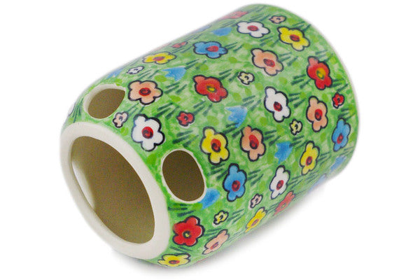 This Whimsical Garden 4" Toothbrush Holder was handmade and hand decorated in Boleslawiec, Poland by skilled artisans according to old traditional methods. This is a Polish pottery Signature Unikat, which means that it has been hand painted with both sponges and brushes and it is signed by the artist who painted it. Unikat pieces are the most intricate works of art. Larger Unikat items take hours of very careful work to finish. This Polish stoneware is microwave, dishwasher, freezer, and oven safe up to 480°F. It does not contain lead or cadmium. It is part of the Whimsical Garden Collection.