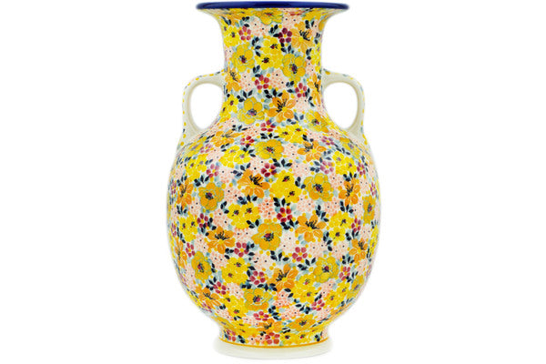 This Seasons Change 12" Vase was handmade and hand decorated in Boleslawiec, Poland by skilled artisans according to old traditional methods. This is a Polish pottery Signature Unikat, which means that it has been hand painted with both sponges and brushes and it is signed by the artist who painted it. Unikat pieces are the most intricate works of art. Larger Unikat items take hours of very careful work to finish. This Polish stoneware is microwave, dishwasher, freezer, and oven safe up to 480°F. It does not contain lead or cadmium. It is part of the Seasons Change Collection.