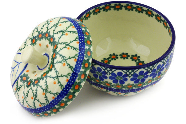 This Primrose Trellis 5" Apple Shaped Jar was handmade and hand decorated in Boleslawiec, Poland by skilled artisans according to old traditional methods. This Polish stoneware is microwave, dishwasher, freezer, and oven safe up to 480°F. It does not contain lead or cadmium. It is part of the Primrose Trellis Collection.