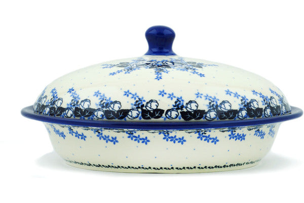 This Flowers At Dusk 12" Baker with Cover was handmade and hand decorated in Boleslawiec, Poland by skilled artisans according to old traditional methods. This Polish stoneware is microwave, dishwasher, freezer, and oven safe up to 480°F. It does not contain lead or cadmium. It is part of the Flowers At Dusk Collection.