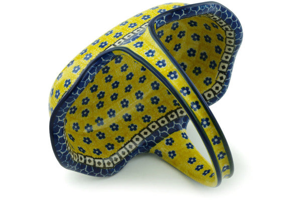This Sunburst Daisies 8" Basket with Handle was handmade and hand decorated in Boleslawiec, Poland by skilled artisans according to old traditional methods. This Polish stoneware is microwave, dishwasher, freezer, and oven safe up to 480°F. It does not contain lead or cadmium. It is part of the Sunburst Daisies Collection.
