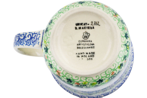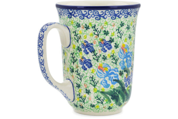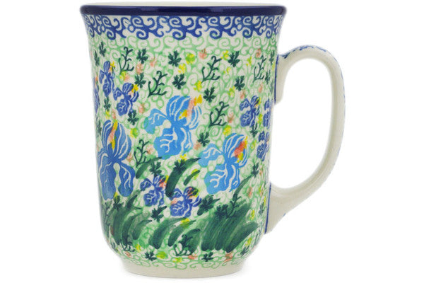 This Blue Iris Delight 17 oz Bistro Mug was handmade and hand decorated in Boleslawiec, Poland by skilled artisans according to old traditional methods. This is a Polish pottery Signature Unikat, which means that it has been hand painted with both sponges and brushes and it is signed by the artist who painted it. Unikat pieces are the most intricate works of art. Larger Unikat items take hours of very careful work to finish. This Polish stoneware is microwave, dishwasher, freezer, and oven safe up to 480°F. It does not contain lead or cadmium. It is part of the Blue Iris Delight Collection.